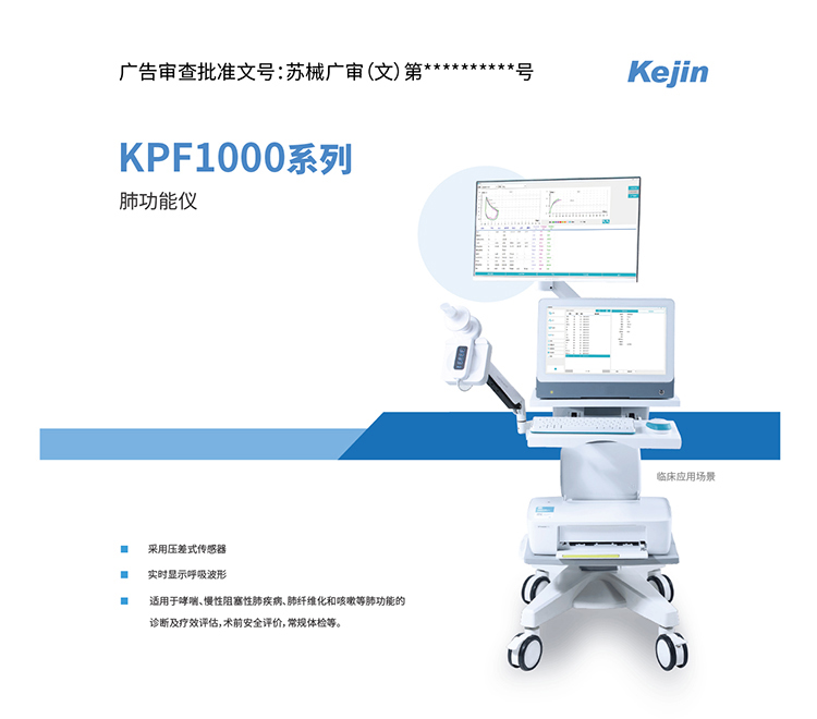 科进KPF1000系列肺功能仪是一款便携式肺功能检测设备,采用压差式采集方式,可进行用力肺活量FVC、肺活量SVC(也称为VC,这两个指同一项目)、最大分钟通气量MVV、静息分钟通气量MV等一百余种参数的测量,实时显示呼吸波形:显示流量—容量环、容量—时间曲线图,适用于哮喘、慢性阻塞性肺、肺纤维化和咳嗽等肺部健康问题的前期筛查以及常规体检与家庭护理等。